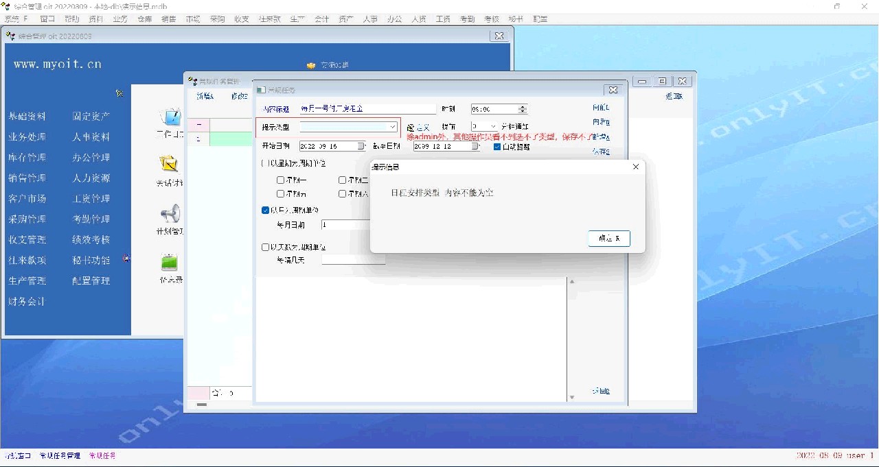 老师,秘书功能--日程安排/常规安排  类型和状态 除admin能显示选择外,其他操作员看不到选不了保存不了这功能,权限都给了,又用演示账套测试下也是一样,大家是不是这样?