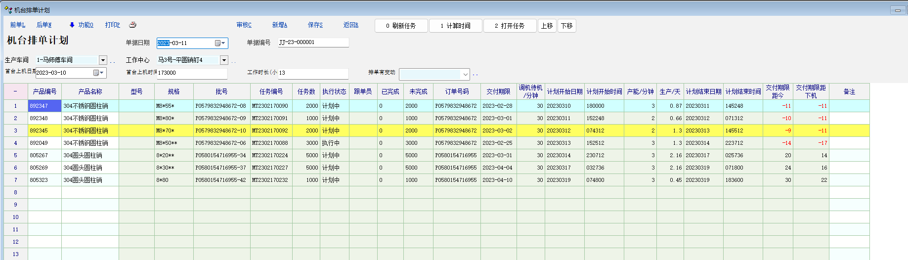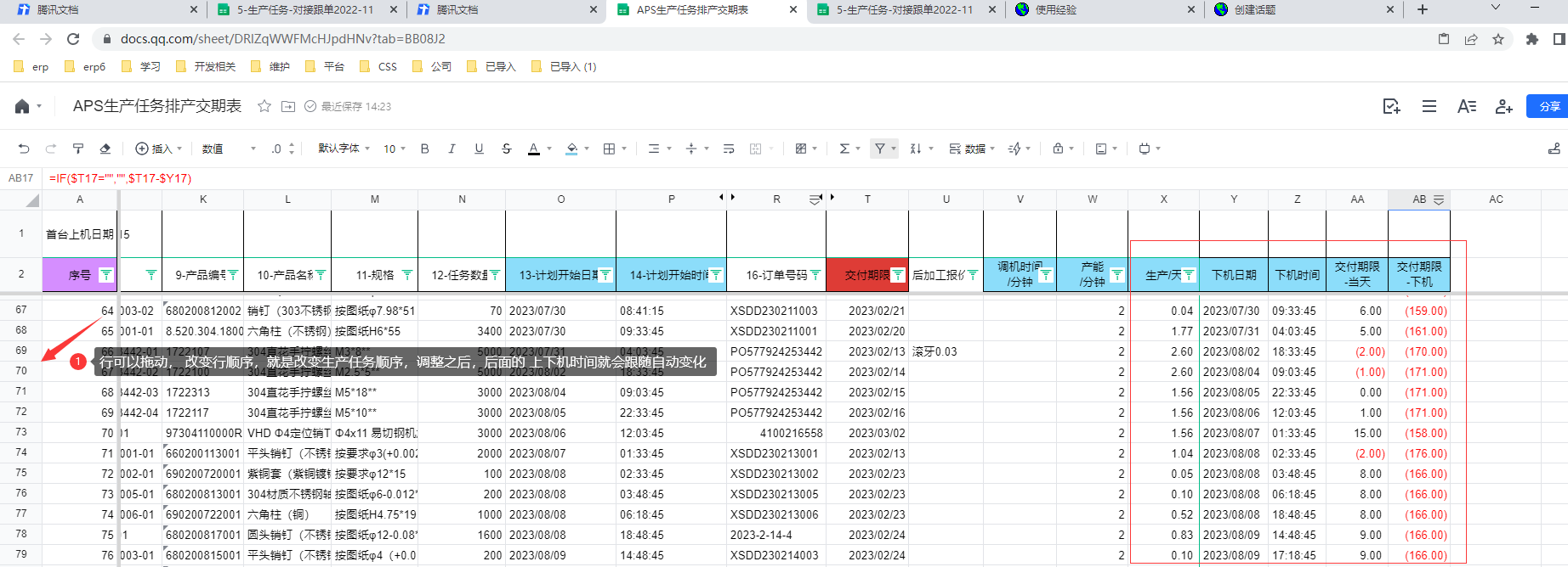 但是这个顺序变更之后,任务清单的内容如何自动计算以实现类似 excel版本的生产排期表?