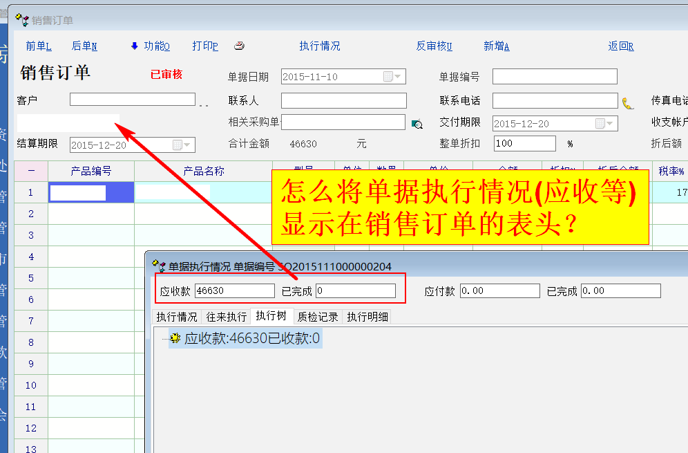 求助_请教:怎么将销售单据的执行情况(如应收款/已收款/已开票金额)显示在表头?_使用经验