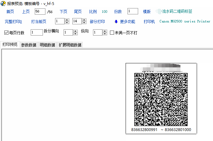 有客户的外箱流水码要求从条形码改为二维码,每个成品一个流水码(12位),前4位为固定的的供方代码,第5位为年份简码,6-7位为生产周,后5位为流水号,每张二维码标签最多包含100个流水码,不同PO同一时间出货的,流水码不能相同,目前只有每箱100PCS以下的订单,所以根据这些条件,启用了一个自定义单据来做外箱标签,用脚本来自动生成所有流水码 目前的脚本只限于每箱<=100PCS的包装数量,超过这个包装数量的脚本需要修改根据指定行复制行内容的条件 脚本思路: 1.启用一个单据类型【HF】的自定义单据,不影响库存,引用【BA】销售订单,表头只显示客户,启用5个表头扩展属性,用来记录【每箱数量,合计箱数,订单数量,前7位流水码,流水码开始】等数值 2.根据表头的客户来判断是否需要生成流水码(有其他客户只打印箱号,不需要流水码) 3.引用销售订单明细数据,销售订单明细有包含【产品编号,订单数量,每箱数量,总箱数,尾数箱数量】等数值 4.根据每箱一个外箱二维码标签的条件(每箱数量超过100就需要多张,暂不支持),每箱一行明细,依据总箱数复制第一行的数据到N行 5.引用过来数据复制行数据完成后保存单据,在保存单据的时候来生成所有流水码 6.添加3个明细扩展列:【lsm,lshks,lshjs】分别为:【流水码前缀(窗口输入,限定7位数),流水号开始(首行窗口输入,脚本行循环赋值),流水号结束(脚本行循环赋值)】 7.根据每张二维码标签最多包含100个流水码的条件,添加101个明细扩展列,命名:lsh+3位序号,从lsh001-lsh101【测试ok后,这些明细扩展列可以不用显示出来】 8.根据每箱数量结合第一个流水码先生成【流水码开始】,【流水码结束】,第一列【流水码】的数据 9.根据列循环开始的列号结合每箱数量来循环生成剩下的流水码数据 10.在打印模板用脚本生成二维码数据,每个流水码之间加上回车字符 单据脚本节选(部分): int func_show() { gui_hide("SpeedButton_Print") int xx,yy,ww,hh,; xx=gui_get_x("SpeedButton_Print") //【打印】横向坐标 yy=gui_get_y("SpeedButton_Print") //【打印】控件纵向坐标 ww=gui_get_w("SpeedButton_Print") //【打印】控件宽度 hh=gui_get_h("SpeedButton_Print") //【打印】控件高度 gui_create_speedbutton("ScrollBox_Func_Left","HF_print",xx,yy,ww,hh,"打印","call_csp.voucher.HF.HF_print"); gui_set_hint ("HF_print", '提示:按照客户匹配打印模板'); gui_set_font_color('HF_print',16711680); gui_set_font_color("HF_print",16711680); gui_disable("edit_Ext1") gui_disable("edit_Ext2") gui_disable("edit_Ext3") gui_disable("edit_Ext4") gui_disable("edit_Ext5") gui_set_font_color('edit_Ext1',16711680); gui_set_font_color("lab_Ext1",16711680); gui_set_font_color('edit_Ext2',16711680); gui_set_font_color("lab_Ext2",16711680); gui_set_font_color('edit_Ext3',16711680); gui_set_font_color("lab_Ext3",16711680); gui_set_font_color('edit_Ext4',0x0000ff); gui_set_font_color("lab_Ext4",0x0000ff); gui_set_font_color('edit_Ext5',0x0000ff); gui_set_font_color("lab_Ext5",0x0000ff); string m_kh; m_kh = gui_get_val("ComboBox_Ext_Eba_Id"); if(m_kh != 'A0004') { gui_hide("edit_Ext1") gui_hide("lab_Ext1") gui_hide("edit_Ext2") gui_hide("lab_Ext2") gui_hide("edit_Ext3") gui_hide("lab_Ext3") gui_hide("edit_Ext4") gui_hide("lab_Ext4") gui_hide("edit_Ext5") gui_hide("lab_Ext5") }; if(m_kh == 'A0004') { gui_show("edit_Ext1") gui_show("lab_Ext1") gui_show("edit_Ext2") gui_show("lab_Ext2") gui_show("edit_Ext3") gui_show("lab_Ext3") gui_show("edit_Ext4") gui_show("lab_Ext4") gui_show("edit_Ext5") gui_show("lab_Ext5") }; return 1; }; int 按箱数复制行() { int i,rc; string v_ddsl,v_lsm,v_item,v_id; rc = grid_get_v("MG_Item","vr_item_ext_4",1,);//获取首行【明细自定义4】列数据(总箱数) v_item = grid_get_v("MG_Item","vr_item_ext_4",2,);//获取第二行【明细自定义4】列数据(总箱数) v_ddsl = grid_get_v("MG_Item","inp_num",1);//获取首行【数量】列数据 v_lsm = grid_get_v("MG_Item","lsm",1); //获取首行【流水码前7位】列数据(弹窗输入) if(v_item == '') //当第二行为空时,根据【总箱数】补齐明细行数据(每箱一行数据打印一张二维码流水号标签) { for(i=1;i<rc;i++); { if(v_lsm != '') //当【流水码前7位】列数据不为空时根据第一行新增明细行数据,避免漏输入【流水码前7位】后还执行复制行操作 { grid_insert_before('MG_Item',i+1) //在指定行前插入一行记录 grid_copy_row("MG_Item",i,i+1);//复制行内容 grid_set_v('MG_Item','inp_num',i,v_ddsl); //最后一行有时其他列数据没有被复制成功,这里从第一行再赋值一次补齐数据避免尾数箱流水号生成失败 grid_set_v('MG_Item','vr_item_ext_4',i,rc);//最后一行有时其他列数据没有被复制成功,这里从第一行再赋值一次补齐数据避免尾数箱流水号生成失败 grid_set_v('MG_Item','lsm',i,v_lsm);//最后一行有时其他列数据没有被复制成功,这里从第一行再赋值一次补齐数据避免尾数箱流水号生成失败 }; }; }; //can_print=1; return 1; }; int 流水号生成() { //按流水号开始数值生成流水码 int i,rc,j,k,count; string v_mxsl,v_lsm,gwlsh,gwlshs,swlsh,swlshs,bwlsh,bwlshs,m_lshks,m_lshjs,v_zxs,v_ddsl,mmxsl,v_lshcsz,v_lshcszss; num v_mxsl,v_lshks,v_lshjs,v_lshkss,v_lshjss,v_mxsls,v_lshcsz,v_lshcszs,v_lshcszss,v_ddsl,v_lshjssh; //输入流水号开始数值 string m_kh; m_kh = gui_get_val("ComboBox_Ext_Eba_Id"); //获取客户编号 if(m_kh == 'A0004') //只有这个编号的客户需要外箱二维码流水贴纸 { inp_clear(); inp_para_set_title('请输入【流水号开始序号】') inp_def_string('mnum','流水号开始序号:'); inp_para() num inp_num; inp_num=inp_get_val('mnum') user_para_set("lsh",inp_num) if(inp_num == '') { msg('【流水号开
