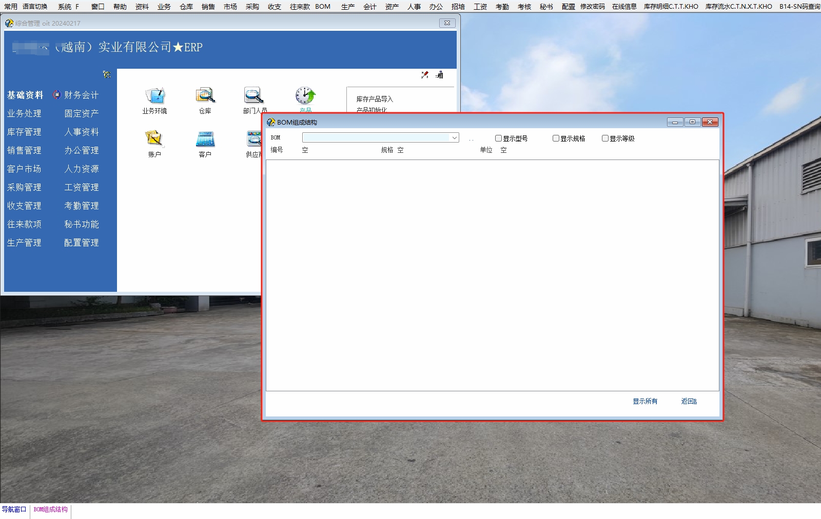 今天试着在自定义的主菜单【BOM】下添加【BOM定义】窗口的【BOM结构树】的子菜单,经测试,发现在登陆客户端没有打开【BOM定义窗口】之前,这个调用是无效的,根据这个特性,在执行【BOM结构树】控件之前需要先打开【BOM定义窗口】一次后再关闭窗口,然后执行【BOM结构树】控件就成功了 1.在【主窗口脚本定义】添加主菜单【BOM】和相关子菜单 int main() { if(have_role("0028")==1)//有BOM查询和导出权限的角色编号 { menu_add_csp("MainMenu",14,'xxxxx','BOM',''); menu_add_call_str("xxxxx",1,"xxxxx3","-",""); menu_add_call_str("xxxxx",3,"xxxxx5","-",""); menu_add_csp("xxxxx",0,"wza","1.BOM列表","bomlb_csp"); //执行【bomlb_csp】脚本文件 menu_add_csp("xxxxx",2,"wzb","2.BOM结构树","bomjgs_csp"); //执行【bomjgs_csp】脚本文件 }; 2.新建【bomlb_csp】脚本文件 int main() { call_func('Res_Gui_Bom_Adm')//打开【BOM列表】 return 1; }; 3.新建【bomjgs_csp】脚本文件 int main() { call_func('Res_Gui_Bom_Adm') //打开【BOM列表】 change_to_win('==TForm_Bom_Adm'); //切换到【BOM列表】窗口 gui_close_win_by_id('==TForm_Bom_Adm') //关闭【BOM列表】窗口 gui_trigger_click("Pop_Ext_Bom_Tree") //打开【BOM结构树】查询界面 return 1; }; |