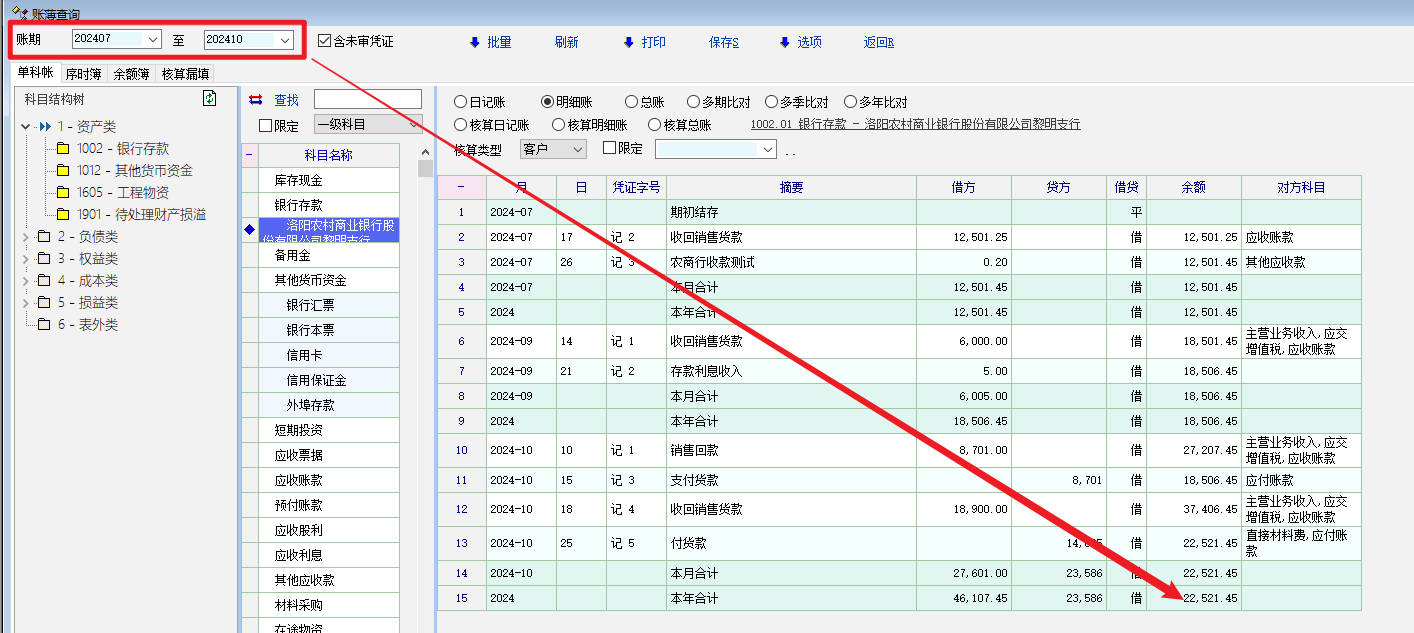 账期如果选择202410-202410,期初余额为0,最终余额与实际不符。