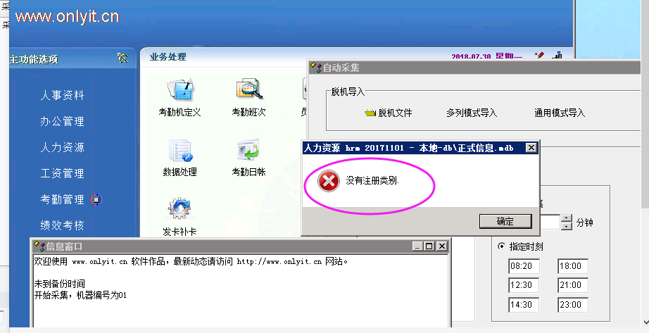 考勤管理,采集数据报错,没有注册类别?怎么解决啊》》请帮忙,谢谢 |