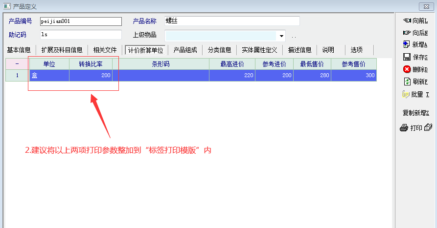求助_标签打印参数整加折算数量及折算单位选项_使用经验