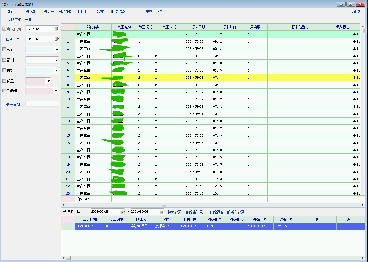 考勤机型号是3749,比较落后的打卡机,没网口。所以只能USB导出原始数据,然后数据采集,就出现了上面的问题