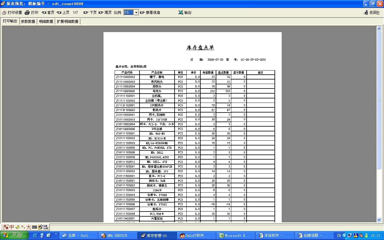 做为一个盘点工作,一般会有两种打印格式,第一种是在盘点前的打印格式,需要盘点人在实盘数量一栏填入盘点数量,所以应该设计一种实盘数量为空的打印模式!!