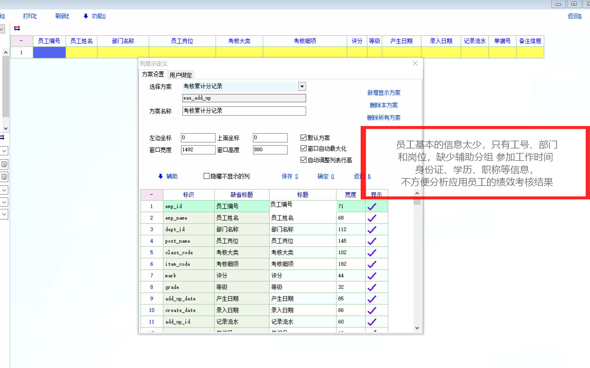 一个员工的累计分 需要员工的相关信息啊  这样才能更好的分析管理!目前只有一个工号 满足不了实际管理需要!