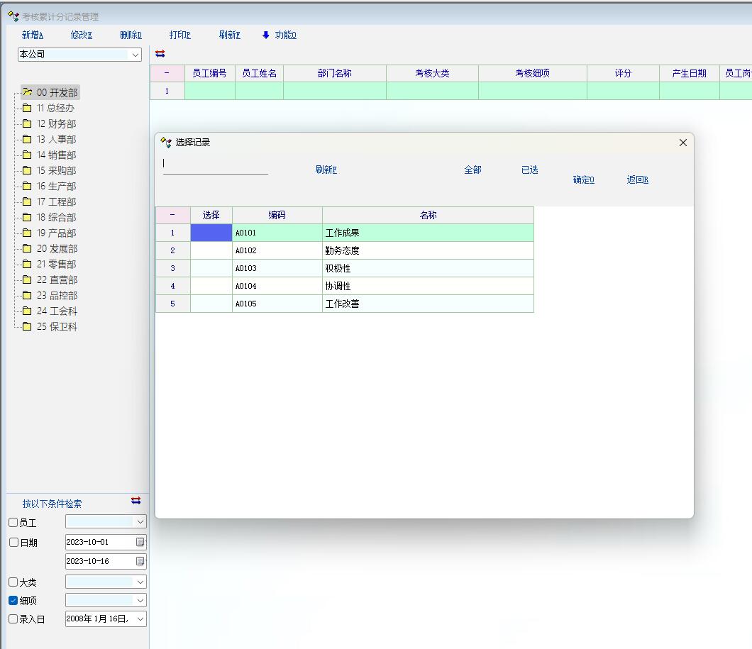 在人事资料项目中的员工资料这一项目打开后,左侧的“按以下条件检索“下的项目打开后可以多选,其他的工作经历、学习经历、社会关系、职称管理等项目打开后,左侧的“按以下条件检索“下的项目打开后可以不能多选,希望能增加多选。其他大项像考核、考勤里面的检索功能也有部分存在不能多选的情况,希望都能加上