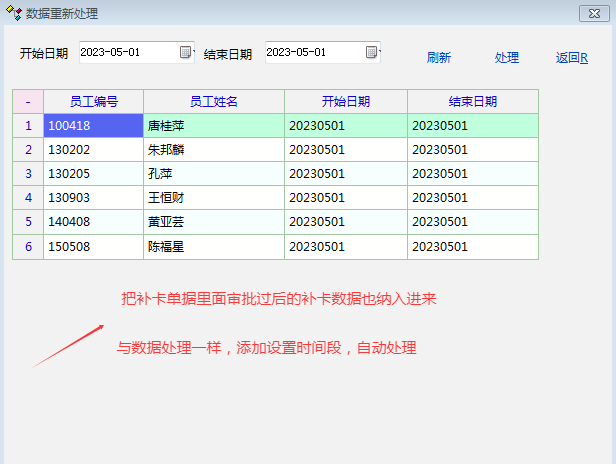 在考勤模块里面,使用了补卡单据补卡,发现补卡后,还要再去找到这个人的数据,再进行处理,如果多人补卡,不同日期、时间段,数据处理起来,就非常不便了;