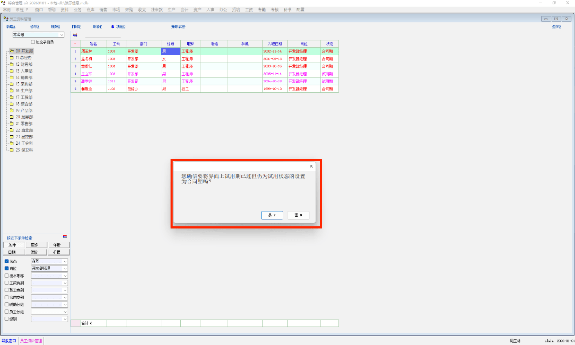 员工资料功能下将界面上合同期已过但仍为合同期的设置为离职的功能提示异常