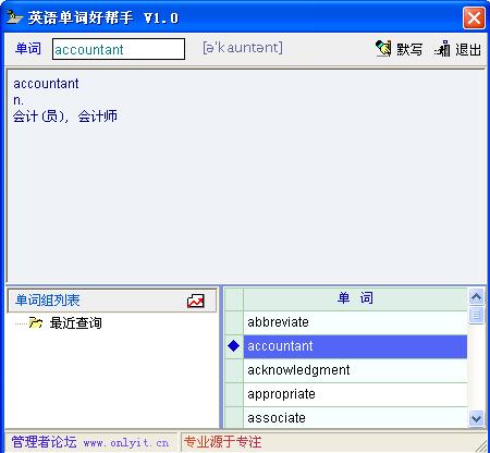盼望很久了,一直希望有那么一个软件,可以把不熟悉的单词查询后自动存放起来,供不断复习。现在终于有了这么一个软件,感谢onlyit的工程师们。