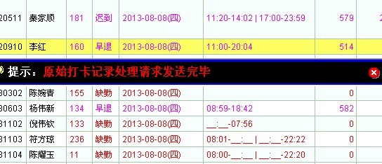 2.每次点右键签卡,如果没有保存,还是会弹出提示自动处理,建议这个处理的信息窗口能否调整一下,影响操作。 图4