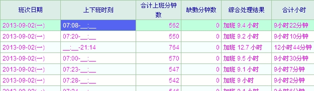 在用通用模式导入考勤,设置时间格式07:00-20:00,导入后20:00不显示,在考勤台账明细管理,有的只显示前段时间07:00,有的显示后段时间20:00,什么原因呢?