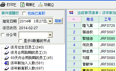 能不能像“日期提醒”里面的“该年新入职人数”和“该年离职人数”,查看该月入职和离职人数呢,并有明细的员工名单。 统计报表里面虽然有 “本月新增员工报表” 但是只有一个数据而没有人员明细。