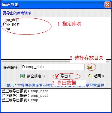 3、导出,这样就会生成3个数据文件到指定目录。