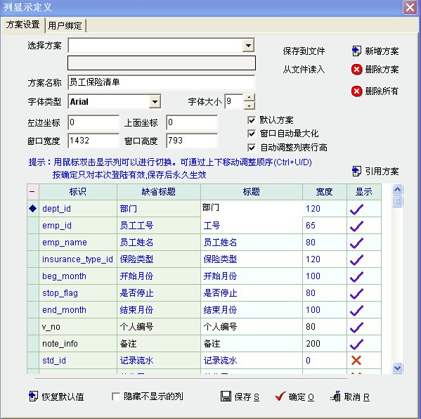员工保险清单,显示定制,无身份证号和家庭住址选项