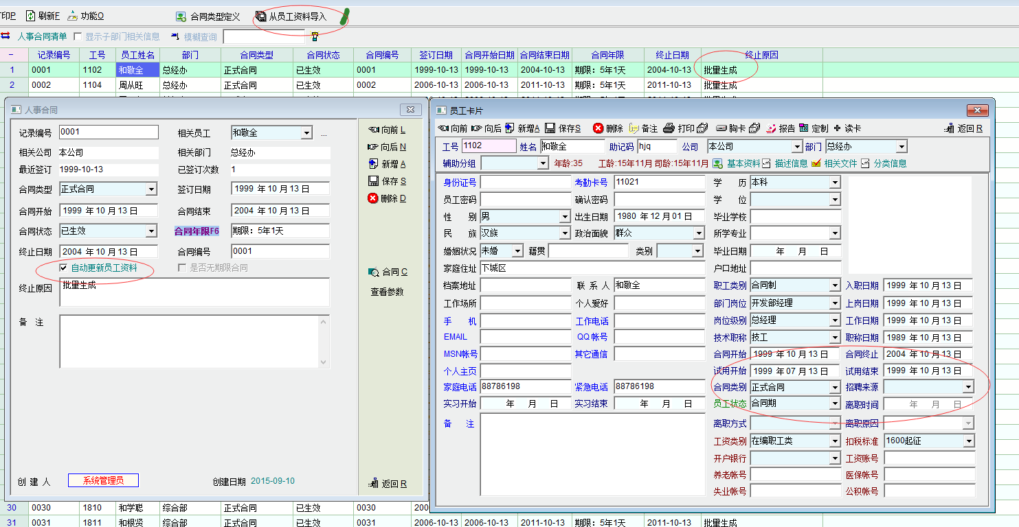 先建员工资料后录合同,顺序别反了呀