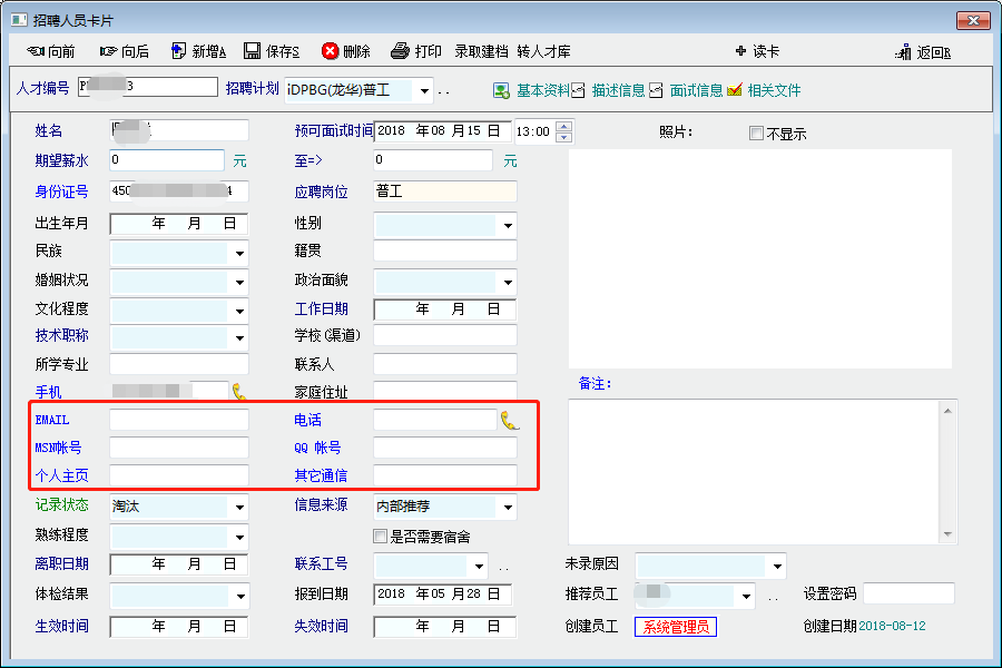 现在员工卡片里面已经有 微信这一资料栏、但招聘人员卡片里面却没有,