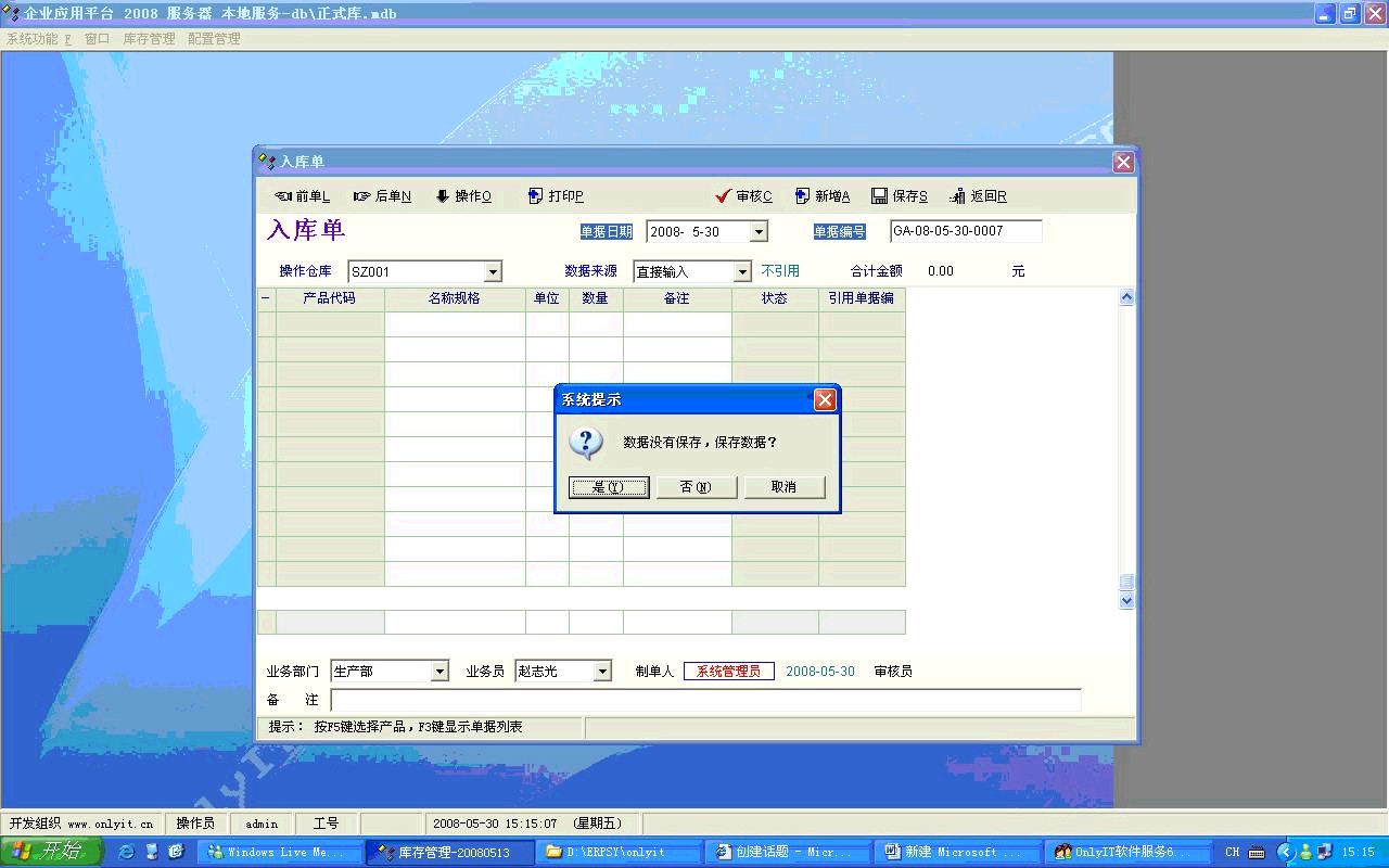 原创_库存管理软件-吹毛求疵--单据信息不能录入,退出要求问是否保存_人力资产