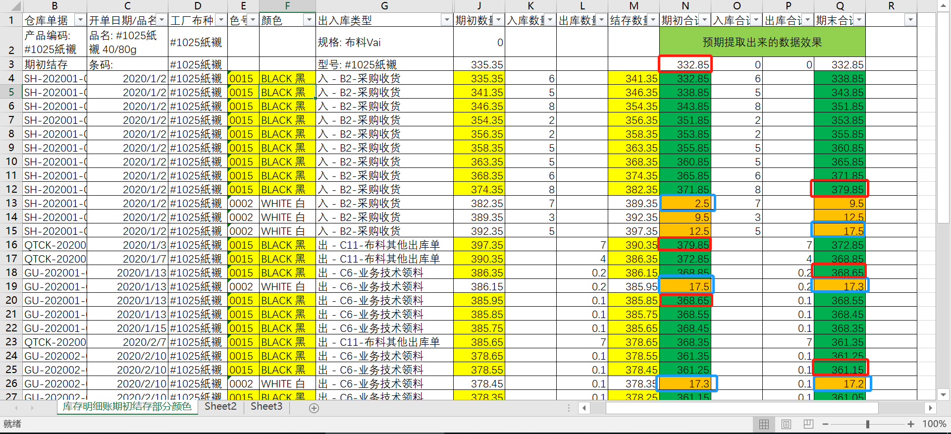 能否修正成期初和结存按照行业属性赛选条件提取的数据一样显示,谢谢!