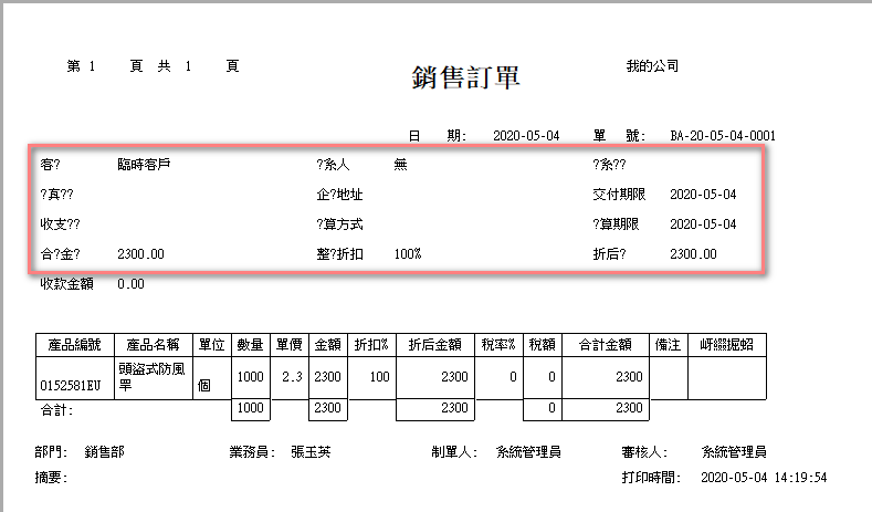 單據界面 4個部分亂碼