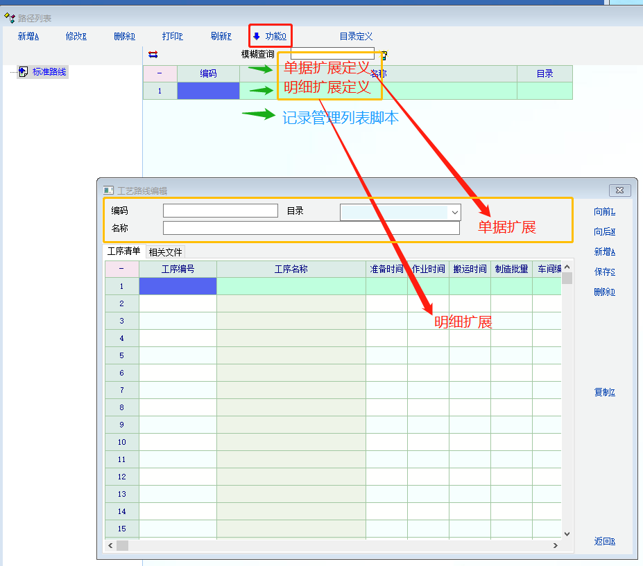 2、你这个工序路线界面,有很多“扩展”字段,不知如何实现的。