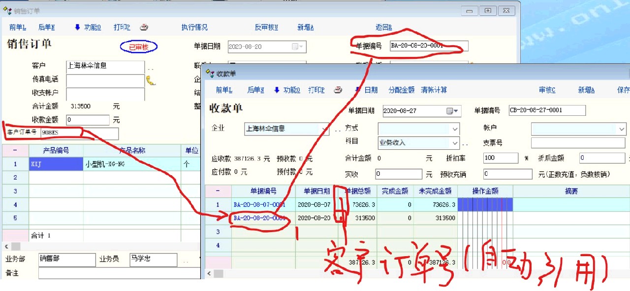 求助_收款单能否引用客户的订单号_产供销