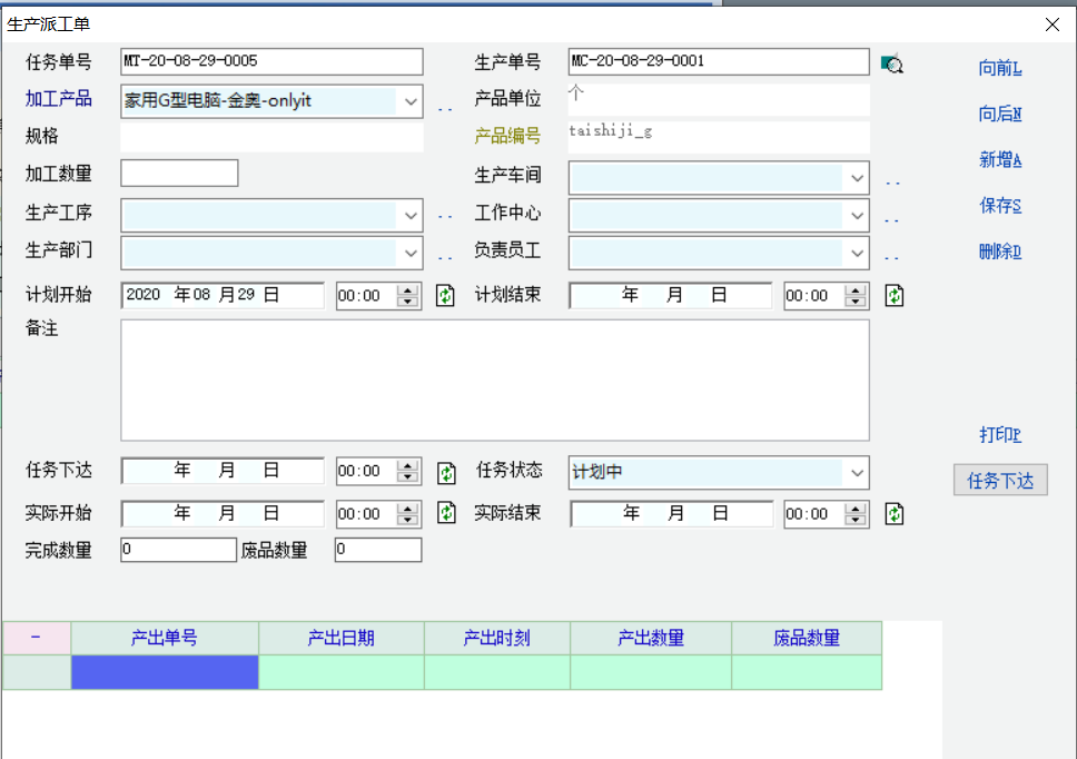 而且派工单(任务编号的产品、数量,不受生产单的产品、数量限制,现在是没有依赖关系),这在逻辑上是不对的。