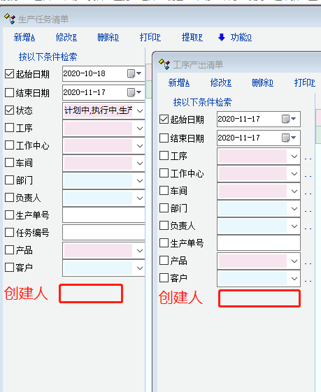另外,能否在上面的两个检索界面 增加 创建人 的检索字段,谢谢