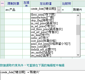 一個 產品里的 自定義條件數據的那個表格