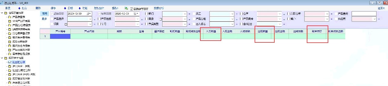 仓库报表里,在哪一张报表里,能同时看到入库数量,出库数,结余数??