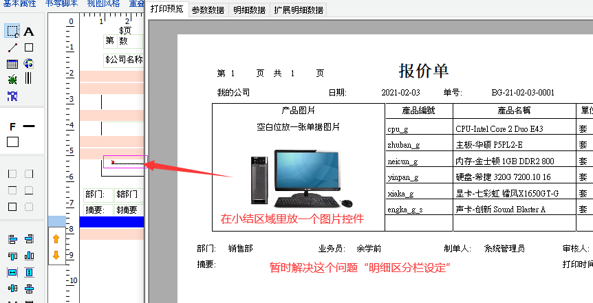 如果打印模板设置里能对明细区域简单的分几个段落,设定明细记录是否作用于此段落就方便了。