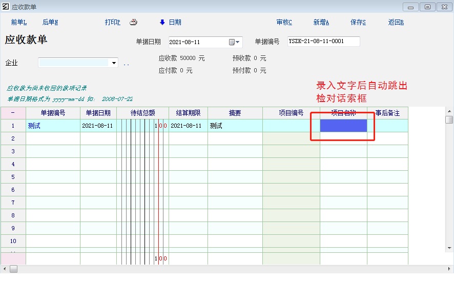 老师好,建议在应收款单、应付款单项目栏录入时提供自动检索功能,谢谢
