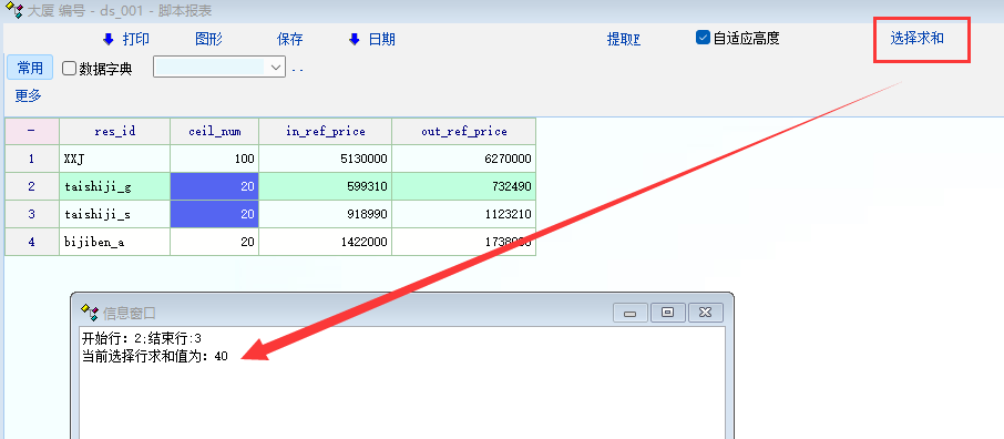 tip("当前选择行求和值为:" + ss);