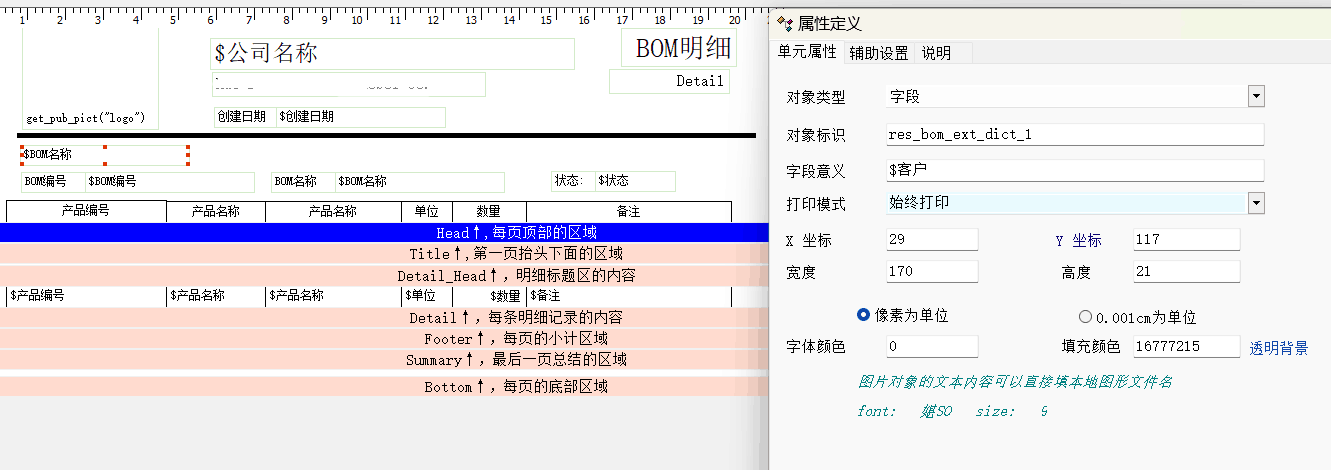 BOM使用了扩展属性之后,BOM明细的打印模板该如何设置呢?请教大家,感谢。