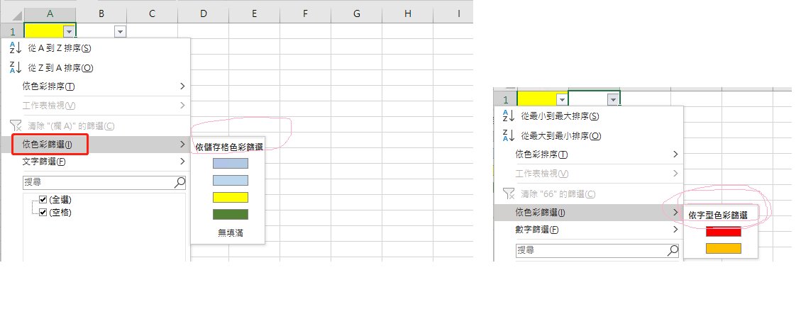 就像excel里的按颜色过滤或排序的功能一样。