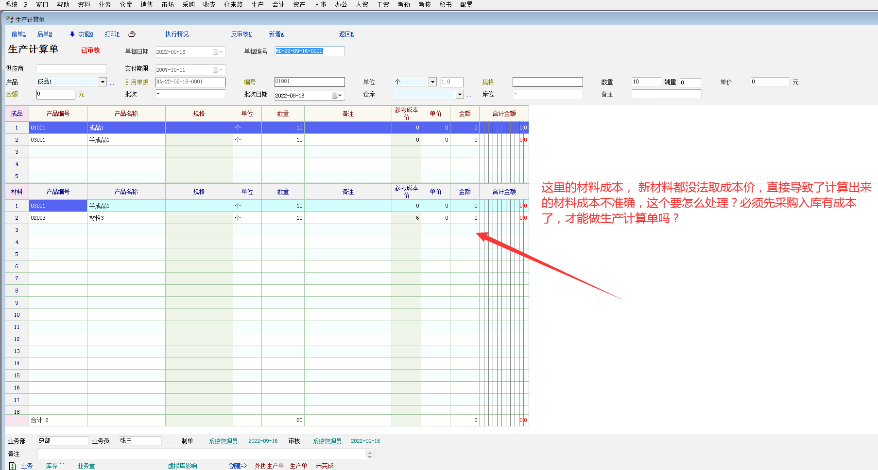 求助_生产计算单 新材料的成本单价取数问题_产供销