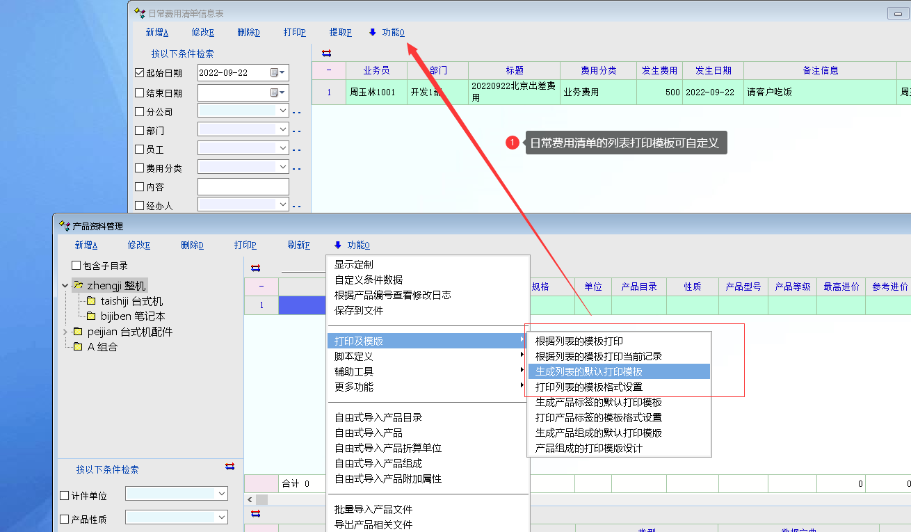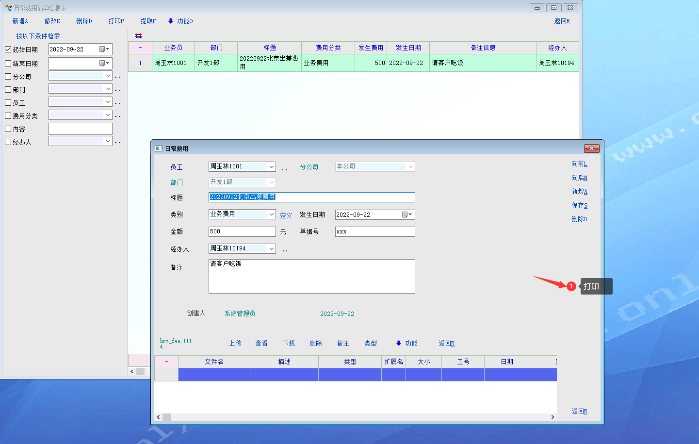 1 人力资源-日常费用卡片记录 增加打印功能.