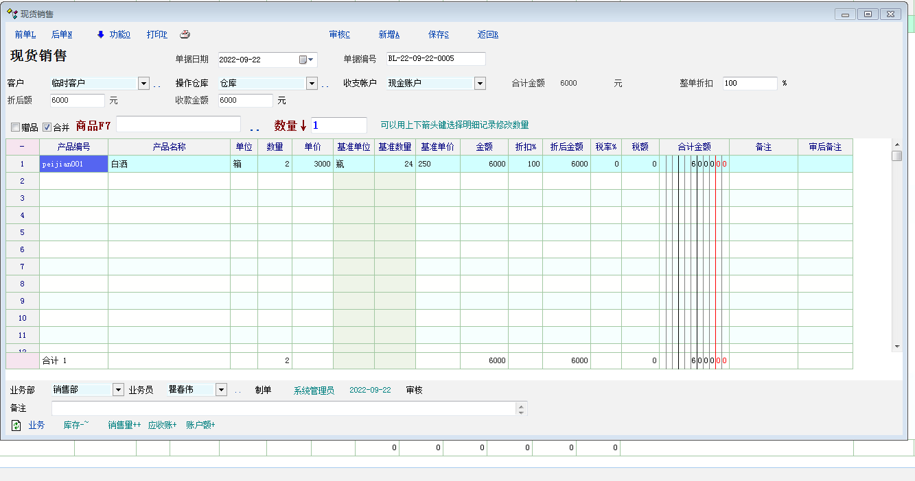这样分开输入,就是整箱你不能输入基准数量的价格,批发比较灵活,价格变动拿货少个2毛,多个5毛什么的需要随时调整..辅助数量和基准数量混合输入 以最基础价格来计算总钱数,这样无论是整件还是领拿都省掉一步辅助数量和基准数量的换算 |