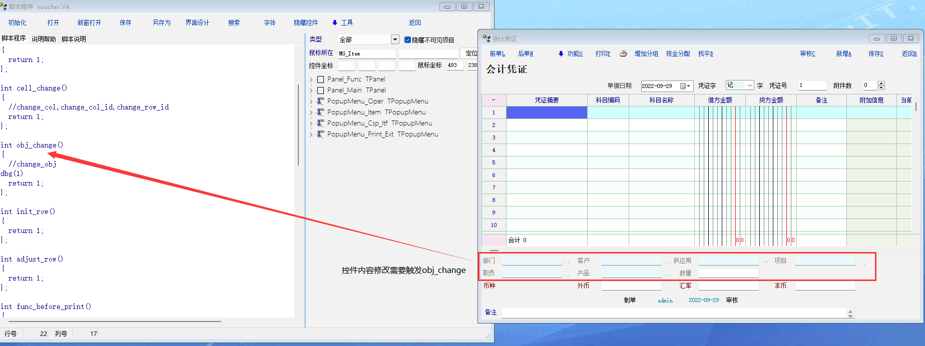 求助_会计凭证辅助核算控件内容修改后需要触发obj_change脚本函数方便后续脚本处理_产供销