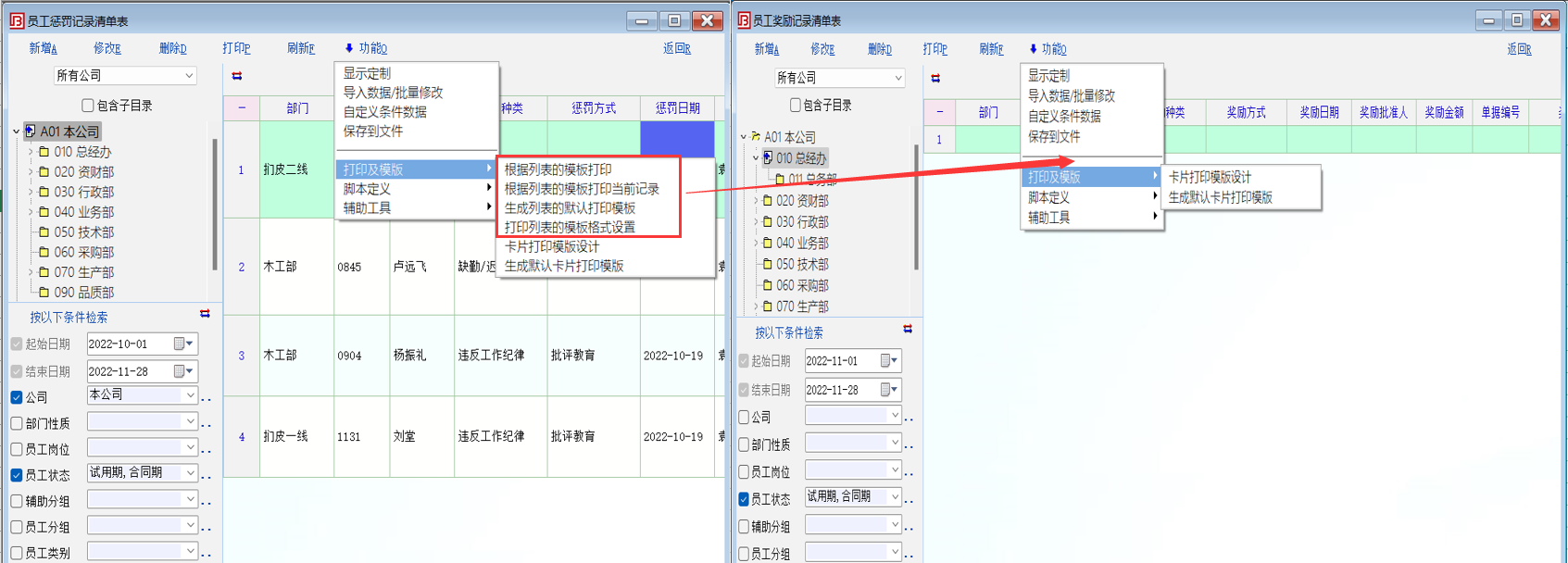 员工奖励记录清单表如员工惩罚记录清单表支持列表打印