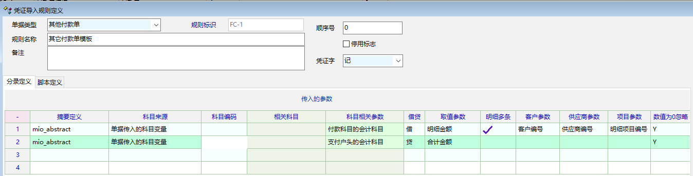 最近发现引入业务凭证时,只有第一行有摘要,其他行摘要都是空的,不知道是什么原因,请帮忙核查。