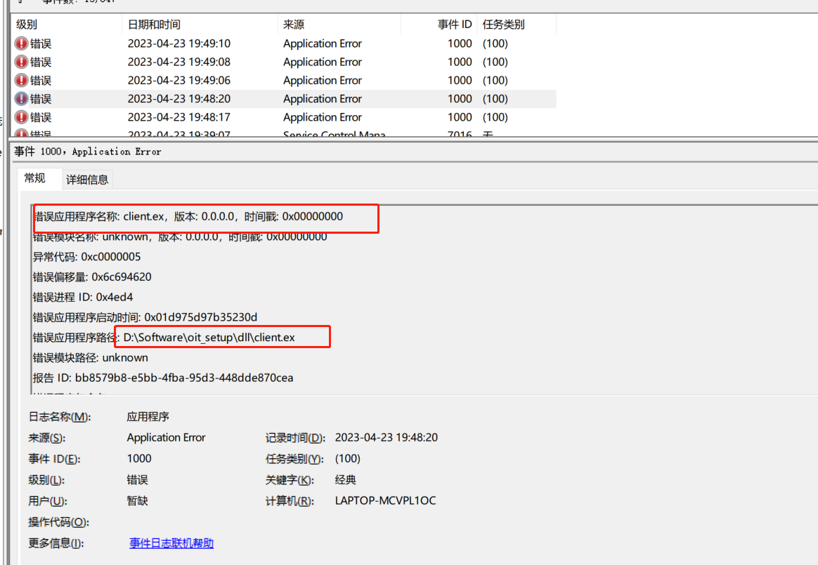 错误应用程序名称: client.ex,版本: 0.0.0.0,时间戳: 0x00000000