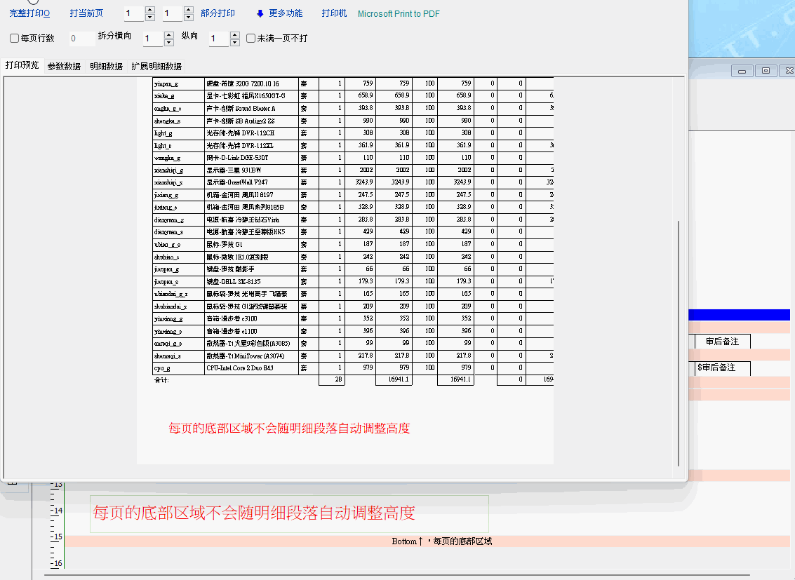 当明细高度变大变小时,如通过打印行数来实现调整时,下面的段落,能否自动跟随上移?谢谢