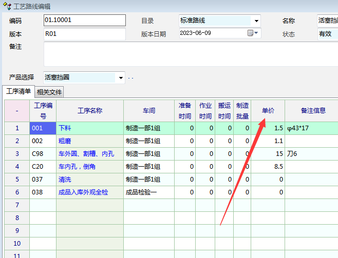 急需工艺路线里面添加单价,审核功能