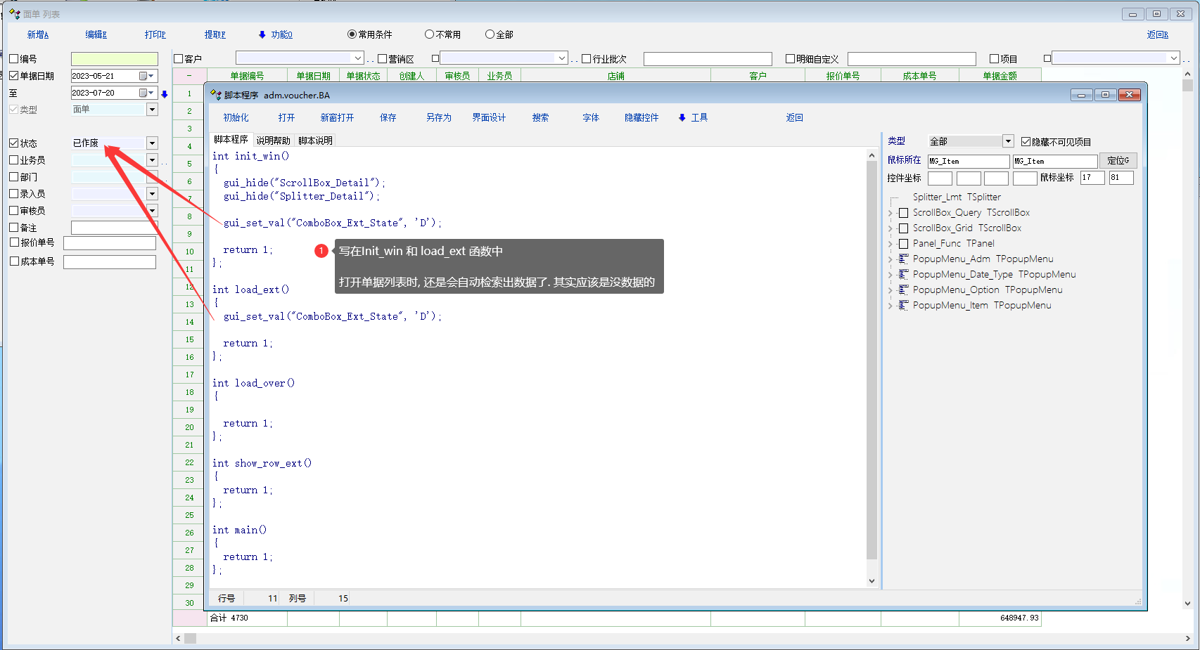 默认不检索出数据 这个选项目前就有,在功能菜单下。 下次发布版本 init_win 函数会放到第一次提取单据列表前。 |