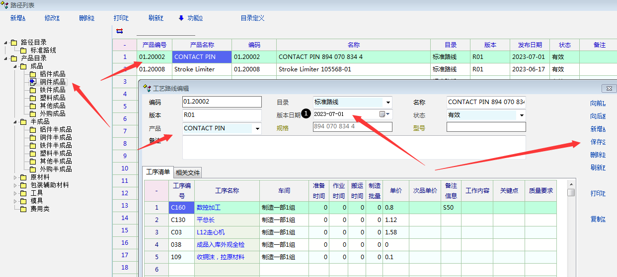 1,产品资料里面直接填写的产品组成,与工艺路线做好后,重新回到产品资料里面选择这个产品需要引用的工艺路线