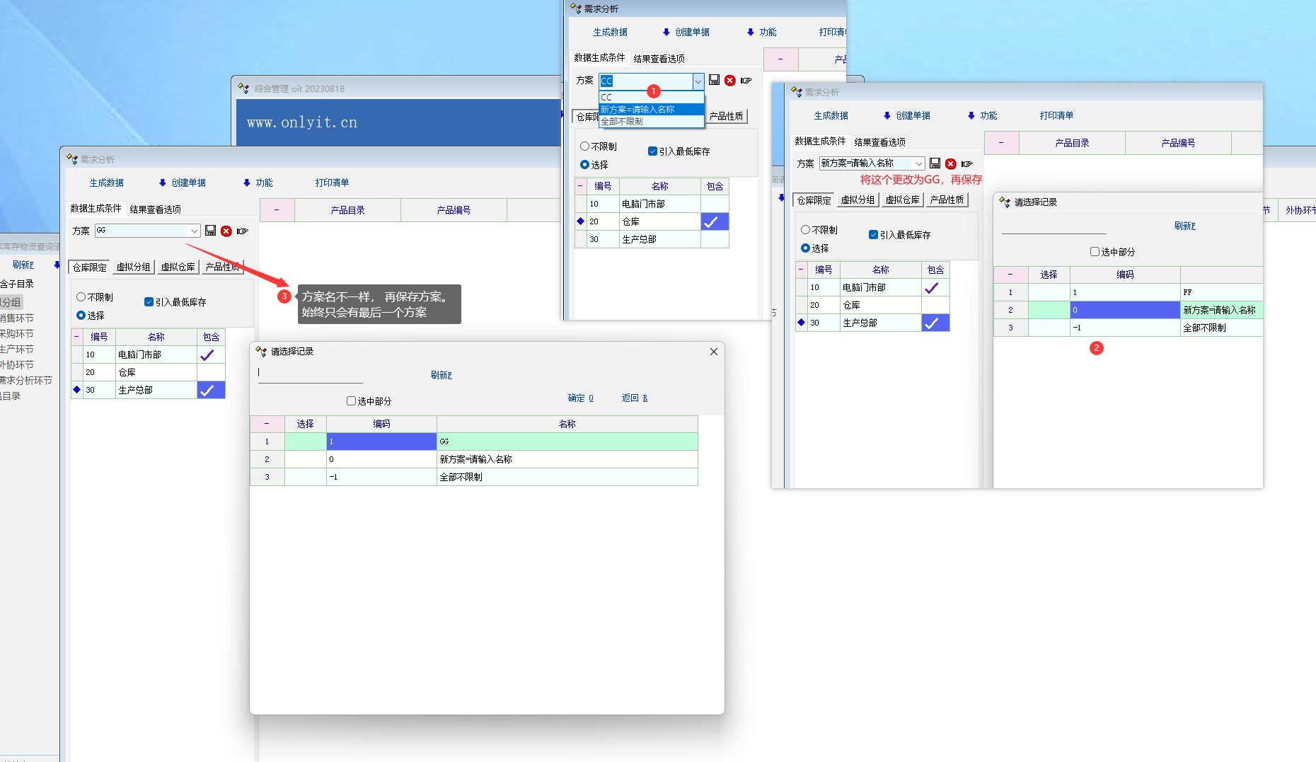 最近指导一个客户使用需求分析,客户尝试保存多个方案。但是操作不成功 。