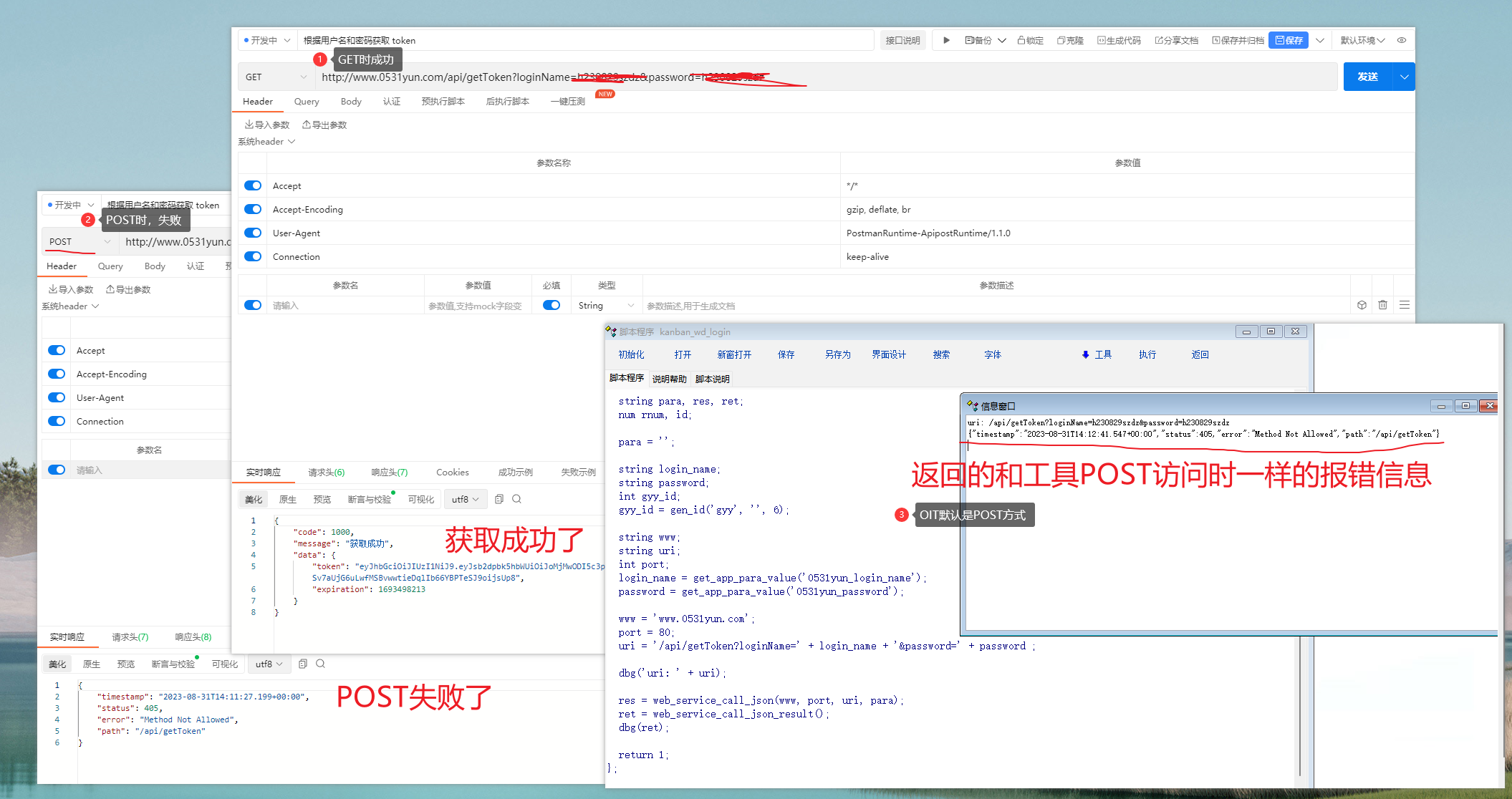 使用工具时, 用get方式是正常的, 使用Post方式返回了错误