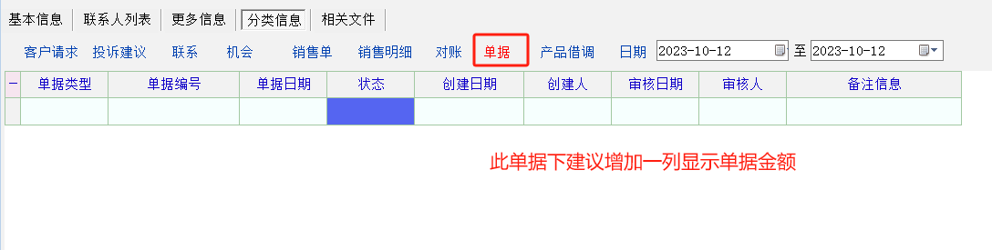 客户资料里单据里,建议增加单据金额列,这样能显示所有单据金额,更方便查看